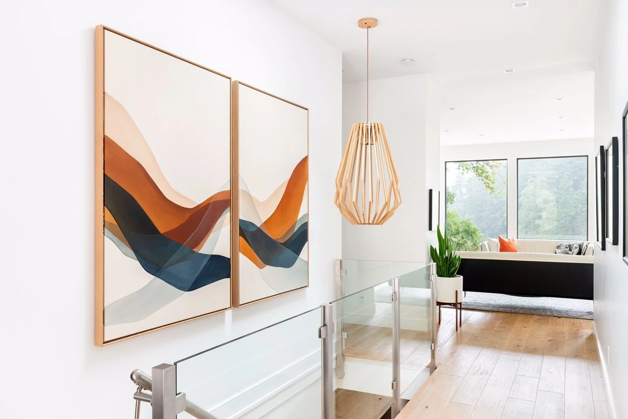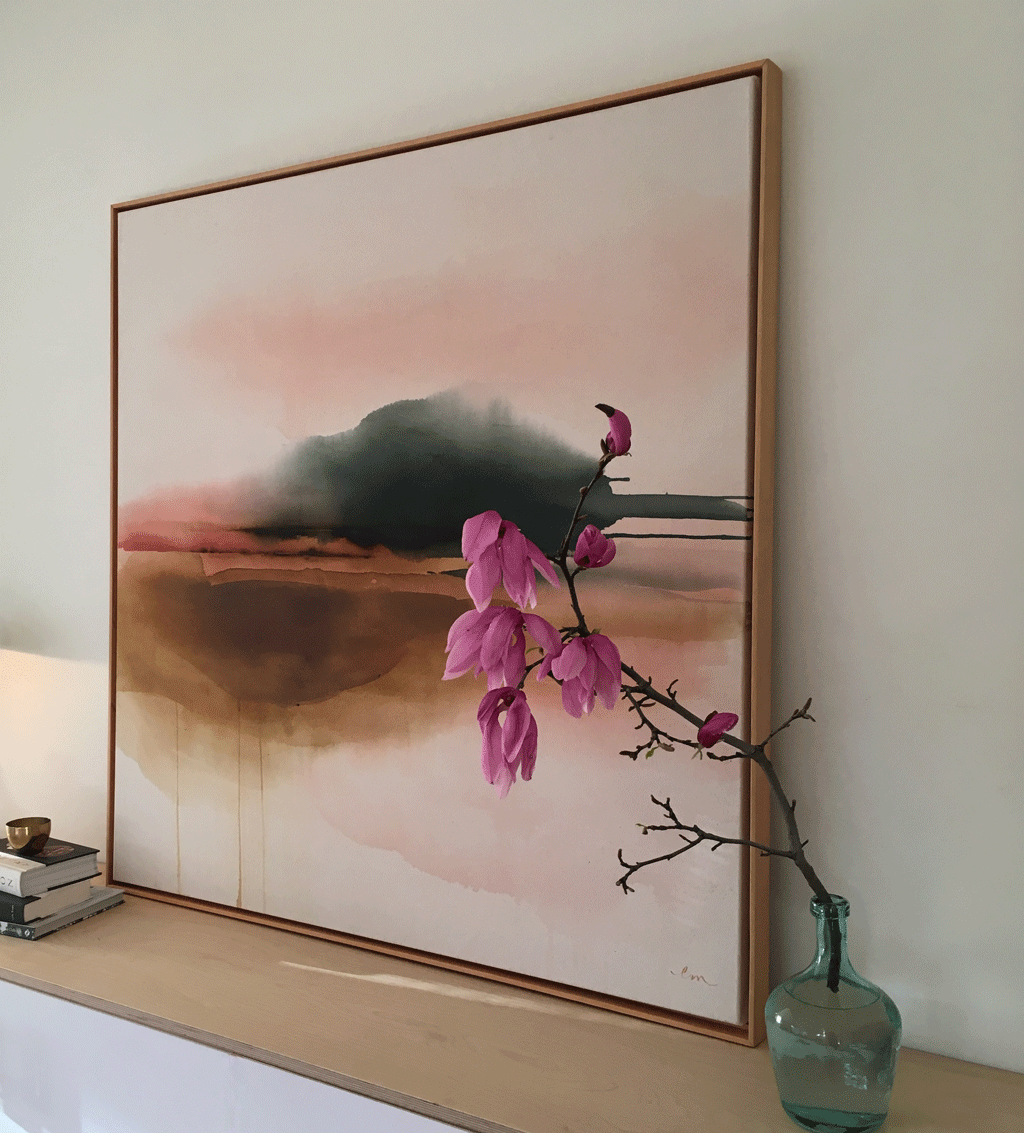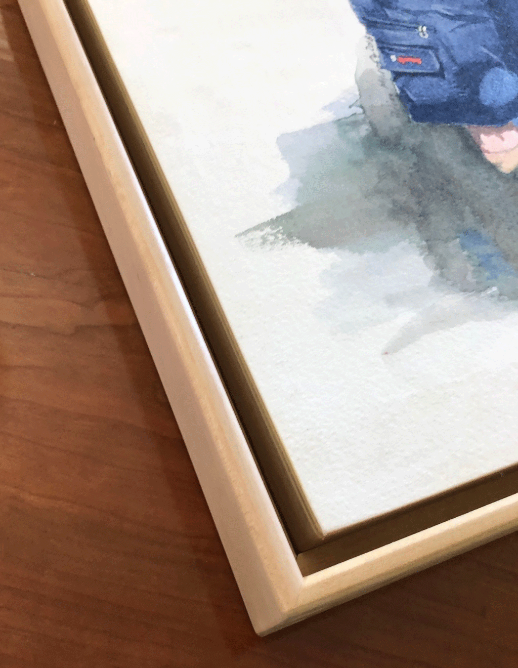 Wooden frames lend an organic outline to fine artwork. The purpose of a well designed floating frame is to ground the art on the wall and give it greater presence.